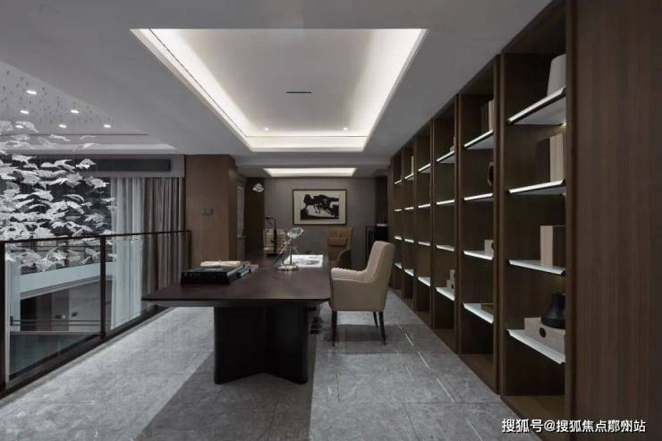 它连接地下车库,层高约5.7米,可以隔成两层,装入酒窖、茶室、影音室、健身房、洗衣房、保姆房等功能空间。推门出去,便是一方静谧的下沉庭院。