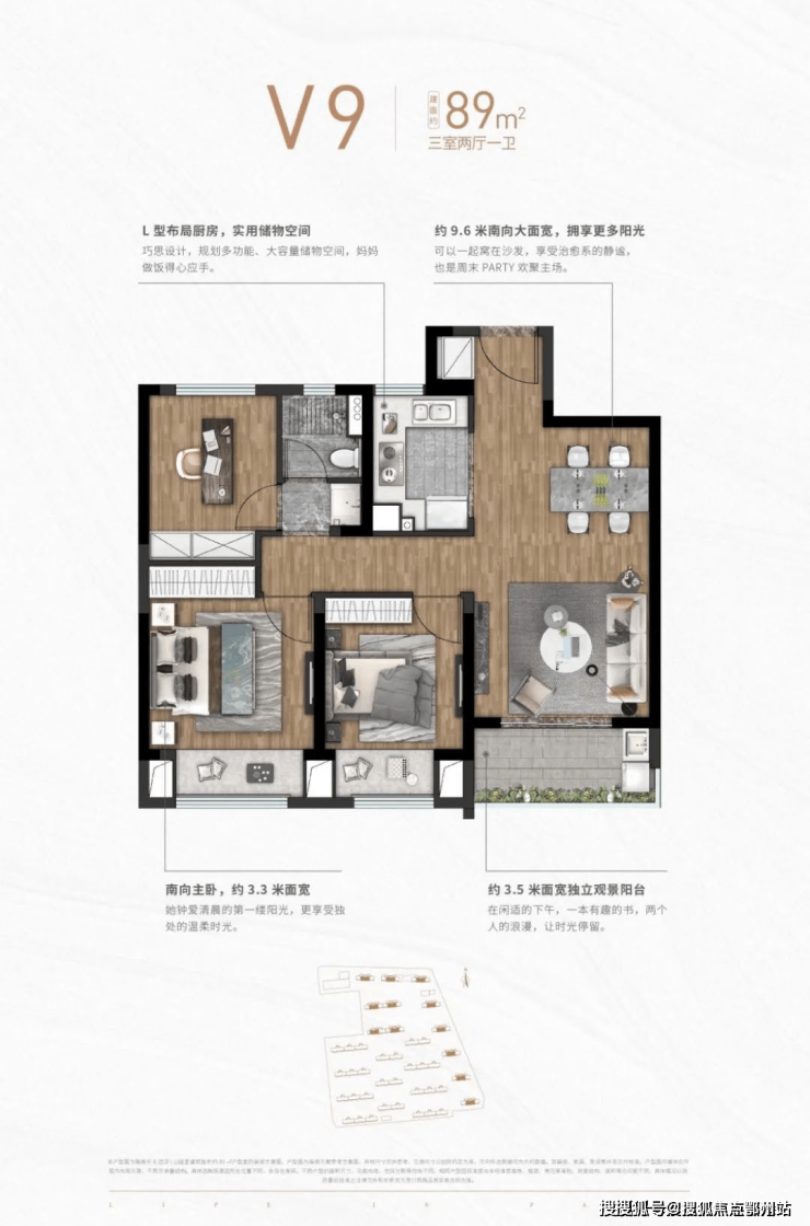 面积:89-125㎡(主力98㎡三房)
