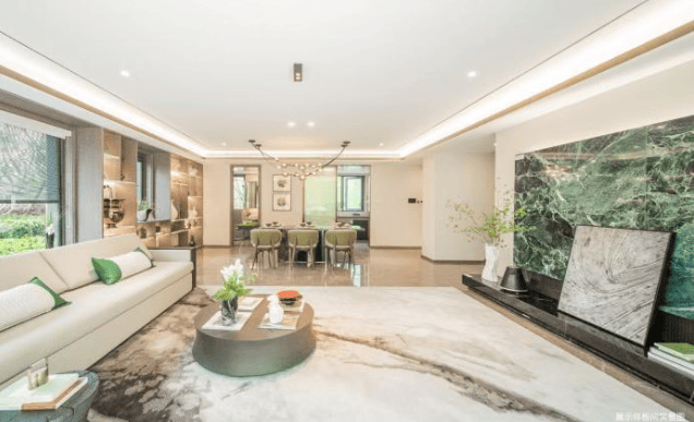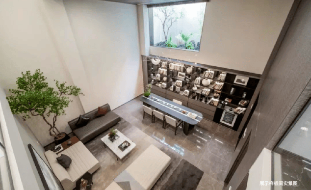 看一眼外立面,白色石材、香槟色的木纹铝板、大面积玻璃的拼接组合,怎么看都不像一个门槛只有400万+的低密叠墅。玉琮水景、山石跌水等等融入景观的大量良渚文明元素,弥漫着专属于杭州的千年气韵。满眼的“越级感”再配上只有1.2的超低容积率,最终才呈现出一座全低密真双叠大盘的样子。