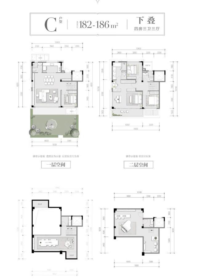 以C户型下叠为例,约18.6m南向大面宽(双层),无界风景延伸入室;