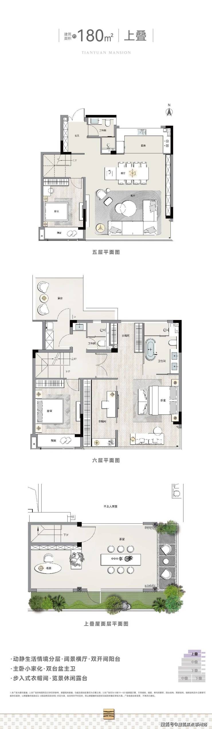 叠墅(6层,1梯2户):主力户型180-282㎡