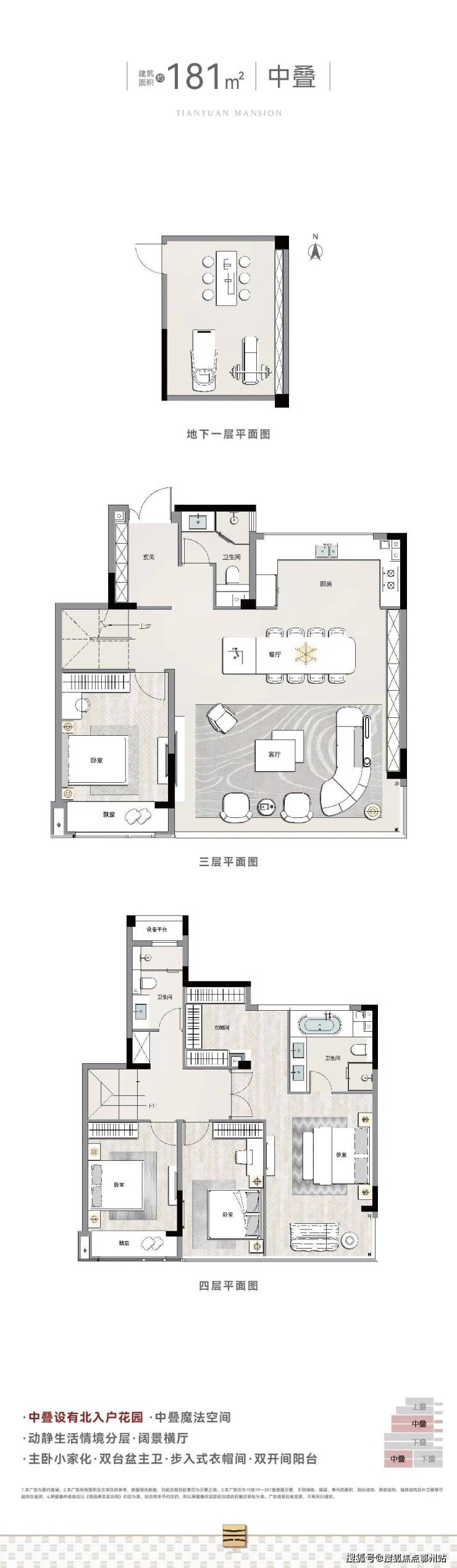 建筑面积约180㎡—282㎡叠墅户型