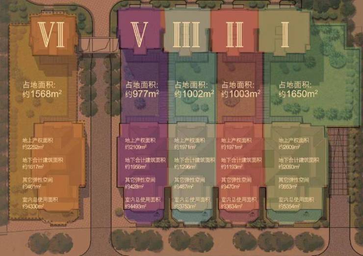 5栋海派洋房建筑,占地1.5-2.5亩,面积在3500-5000平米,每层层高约4.5米。