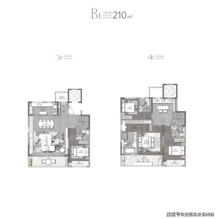 中叠210㎡:赠送38㎡地下室,总价820-950万元。