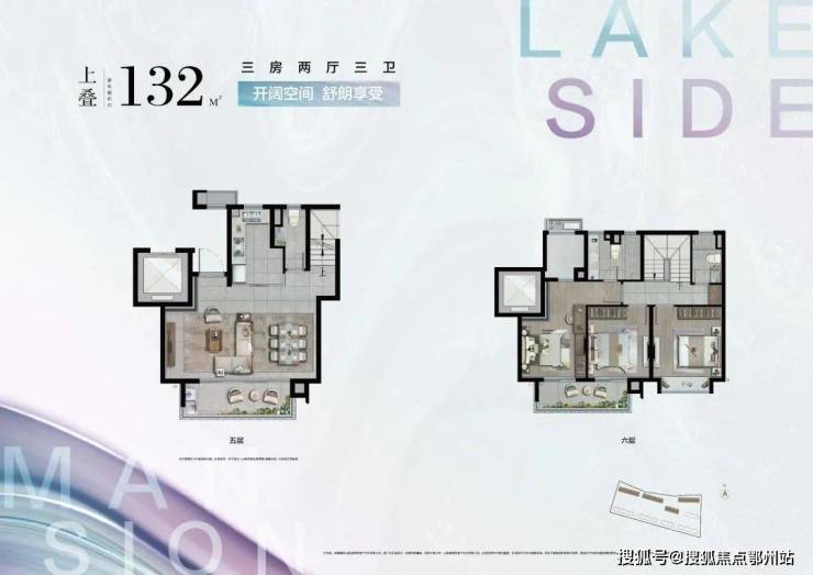 上叠:建面约132㎡,三房两厅三卫