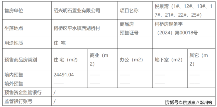 柯桥区人民政府网发布了 悦景湾现售许可公告,商品房预售证号:柯桥房现备字(2024)第00018号。