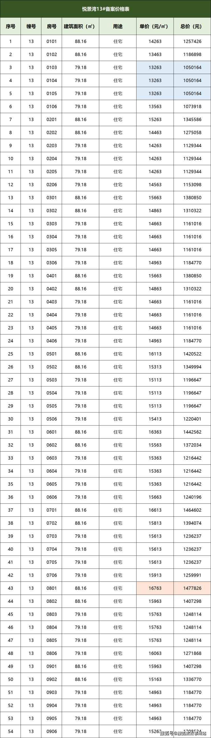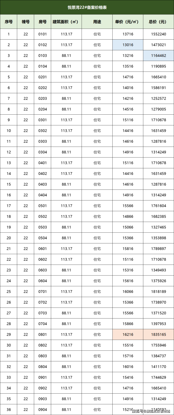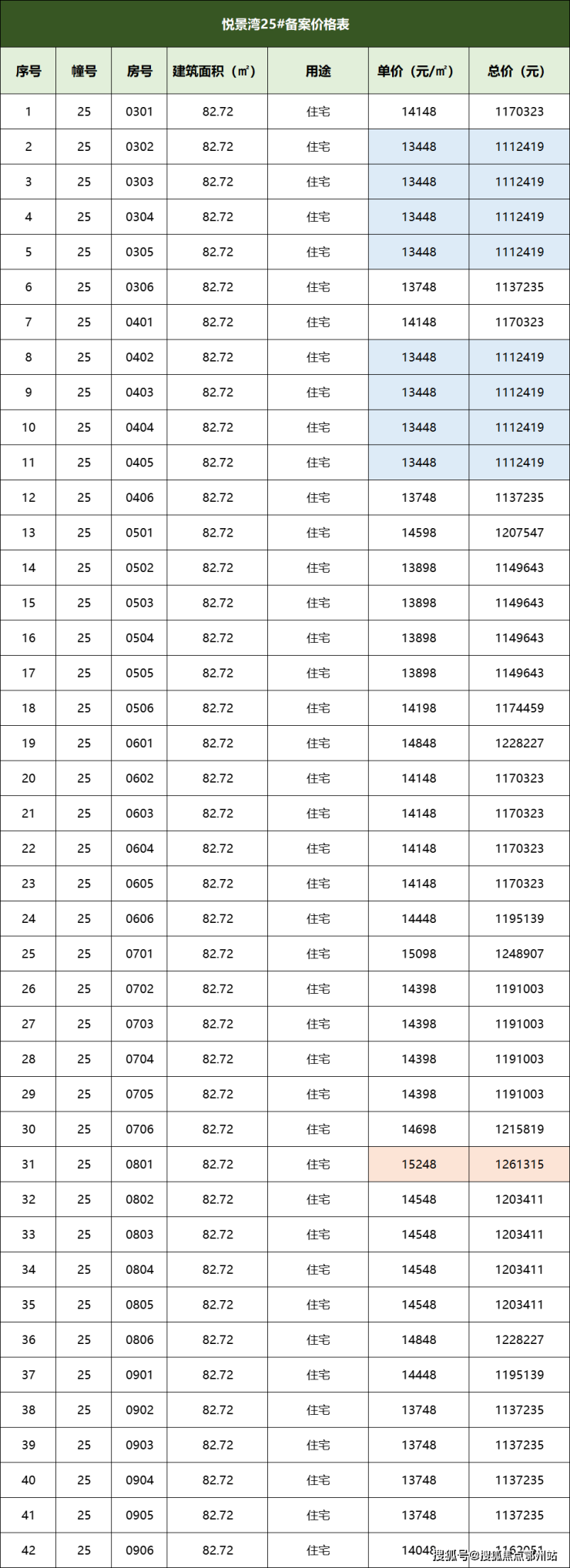 一房一价表