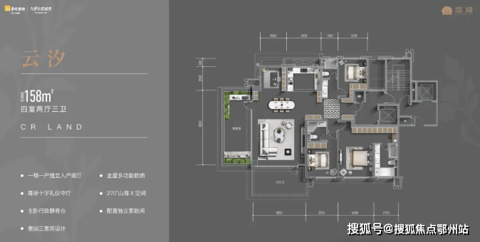 🔺158平,小高17层,一梯一户,四室两厅三卫,层高3.1米,得房率约118%,成交价约2.6-3.2万元/平