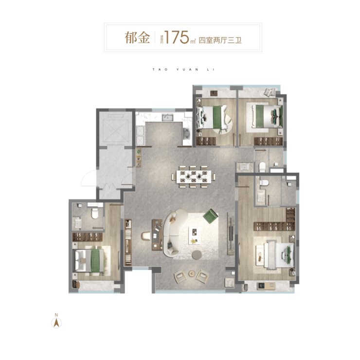 通过新桃源会客厅社区广场与独立社区会客大堂、林荫归家步道、中央景观聚场、品质入户单元昭示性景墙+专属入户铺装、首层精装大堂五大节点,赋予归家路途更多逸趣与美好。