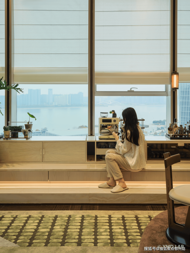 巨大的玻璃幕墙,如同永不落幕的IMAX巨幕,将钱塘江的潮汐、奥体璀璨的天际线,实时放映为专属于你的城市电影。景致随心境流转,于此,静谧与辽阔达成美妙的共生。