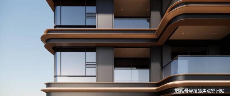 弧形天幕立面设计,采用大面积玻璃天幕与香槟金铝板条相结合,实现了内外空间的无缝衔接与一体化,为城市天际线增添了一道独特的风景线。此外,项目还运用了极致的窗墙比设计,显著提升了室内整体的采光面积、亮度以及通风效果,为用户带来更加舒适、明亮、通透的居住体验。