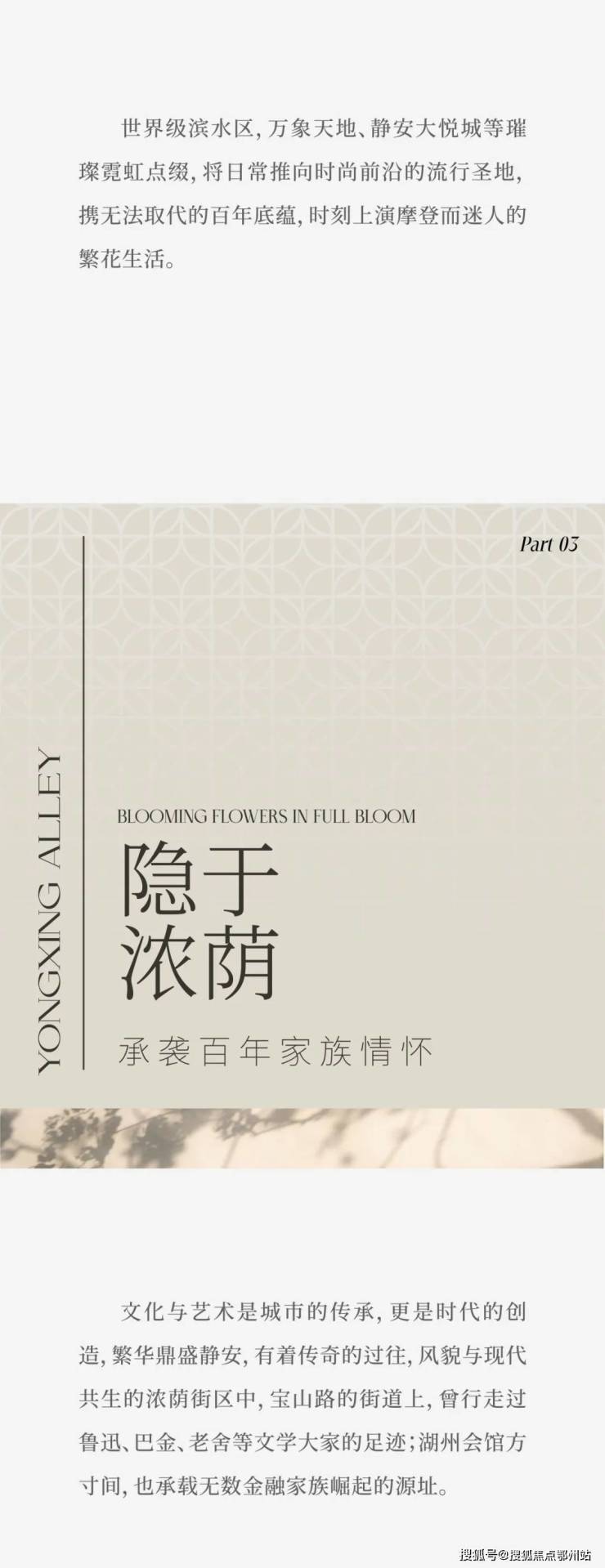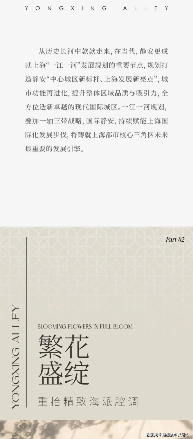 风貌别墅,海派历史底蕴的独有呈现方式。「保利·永兴里」屹立静安心浓荫繁盛之脉,以风貌之形制,敬呈永恒经典的人文恒产。21席城央风貌墅邸,面积约170-210㎡,复兴里弄建筑传统特色建筑肌理,在半露半显、半天半地中,让世界家族重回CAZ浓荫区。