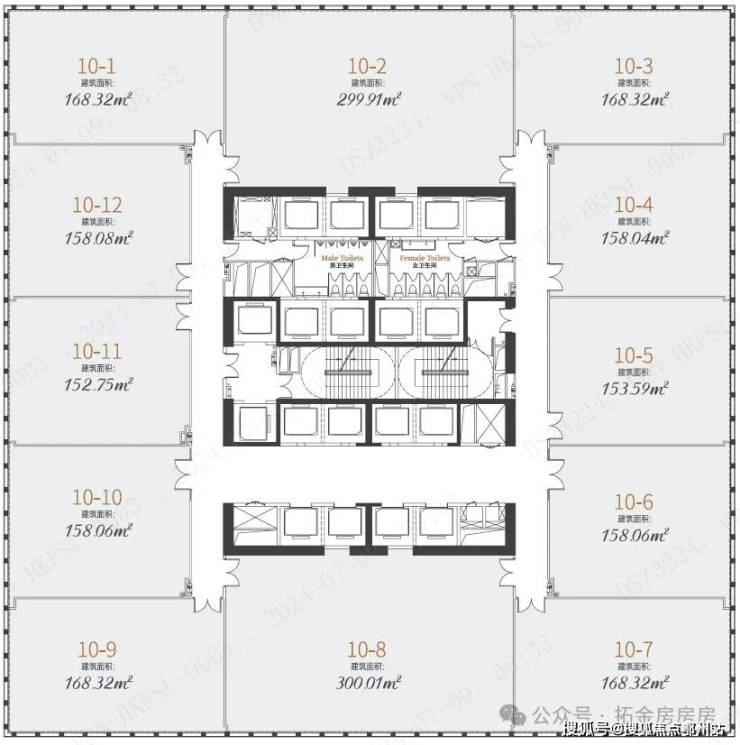 精装交付,每层7-12户划分,面积约150-2400㎡灵动组合