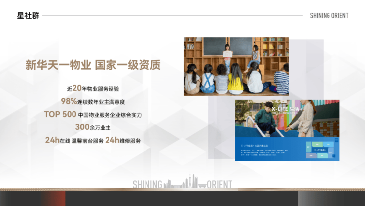 在人居建设方面,新华·星耀东方追寻建筑比例与神韵,把时光沉淀下的建筑美学与低调奢华的质感融入建筑。将传统意境和现代风格对称运用,现代简约的外立面、典雅的建筑屋顶,于细节处精心勾画的窗户、阳台等,每一处细节皆是考究。