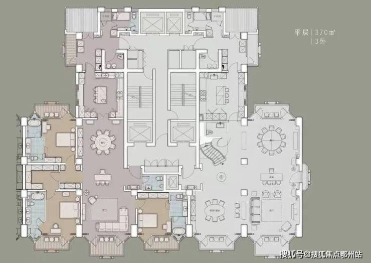 以2号楼为例 总高39层;实际住宅36层;1栋楼分2个单元 每个单元2梯2户;每两个楼层2个单元共6户大宅,370㎡平层(两个楼层2个单元共4套),680㎡复式(两个楼层2个单元共2套)另传最终交付时候可能会有户型定制