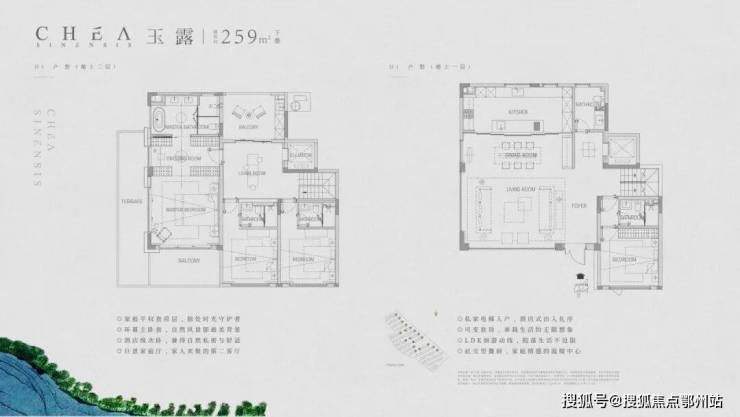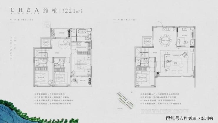 以建面约210㎡的上叠“云雾”和建面约221㎡的下叠“旗枪”为例。月陇云岚解决了很多叠院上下叠共用电梯这个痛点,在这个项目里,所有的户型都是私梯入户的。下叠入户口在南向花园,上叠在一楼也有北向私梯入户花园空间。