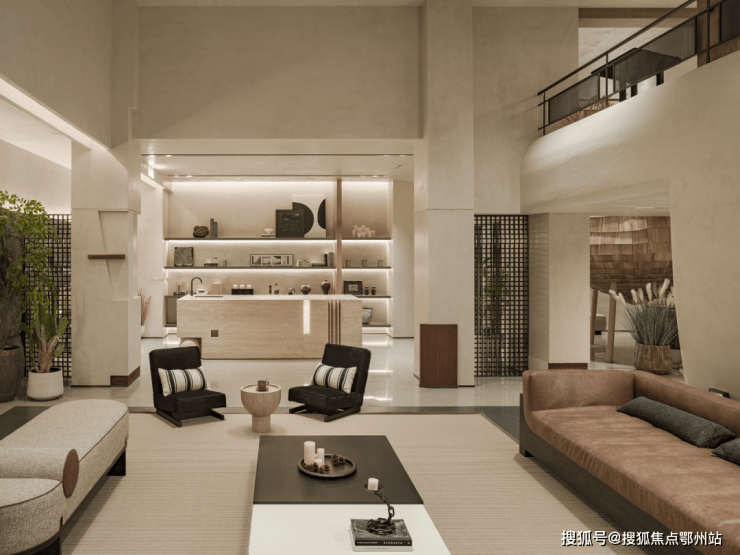 客厅,西厨餐厅,中厨吧台与圆桌餐厅都在四层的空间,如何让每个区域更加完整,且动线合理,设计师重新调整了入口方向,需要多走几步路,绕一个弯后才能进入。但这样的设计恰恰让人可以放慢脚步,调整工作和生活的节奏,增加了归家的仪式感。
