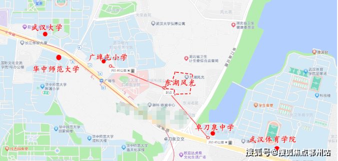 教育上,小区距离洪山区第一梯队的中小学组合广埠屯小学和卓刀泉中学直线距离约400米,东湖风光一期是对口这两所学校的,附近还有众多高校环绕,学习氛围非常浓厚,以后娃找家教简直是得天独厚的资源。