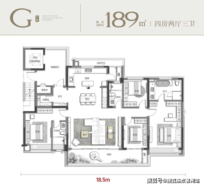 这份热销的背后,并非偶然,而是精准锚定高阶改善赛道的必然结果。以荷语江山府西区为例,约 189㎡户型的出现,不仅一举突破了区域大平层产品上限,更提升了整个楼盘的价值属性与改善高度。要知道,一般能承载如此奢阔尺度的住区,其规划定位、品质营造本就远高于常规社区。