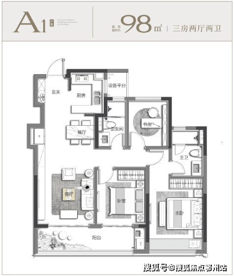 对于刚步入改善阶段的年轻家庭而言,即便预算有限,对家的空间与品质也绝不妥协,所以如何实现小面积也有大享受,成为核心诉求,而约 98㎡户型恰好给出了完美答案。