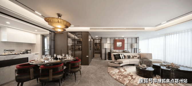 LDKB 一体化设计 进一步放大空间感,客厅、餐厅、厨房、阳台无缝衔接,朋友小聚时,从客厅到餐厅动线流畅,没有丝毫的局促。