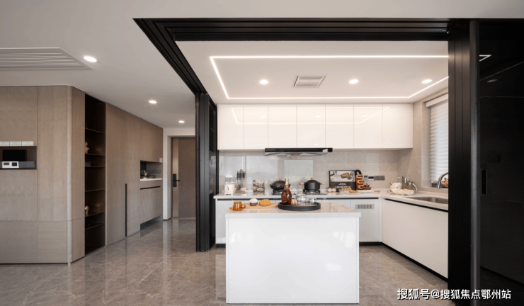 中西双厨设计则满足品质生活爱好者的需求:西式岛台可用来制作沙拉、烘焙甜点,朋友聚会时,主人在岛台备餐,客人在客厅聊天,互动感拉满;中式厨房则专注烹制拿手硬菜,油烟与活动区完全隔离,兼顾美味与整洁。