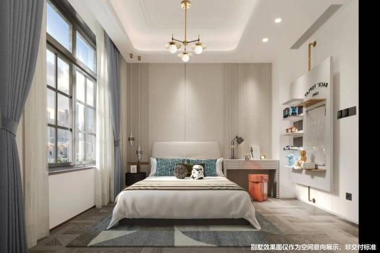 另外,这是一个 正三房户型 , 北向房间可从容放置一张床 ,是真卧室!你要知道当下百平米北房间往往过于紧凑只能当书房使用。