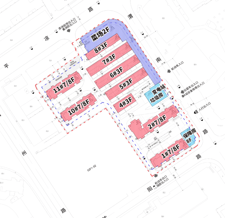 该地块东至渭南路、南至沈阳路、西至02F1-02、02F1-03地块、北至平凉路,地块出让面积10284.23㎡,容积率1.6,建筑面积16454.77品㎡。