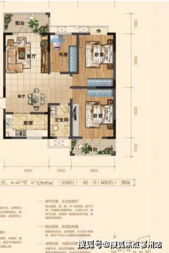 三居室:建面126.18㎡,总价约73-75.5万/套