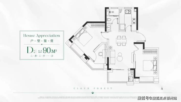 D户型 建面约90㎡2房