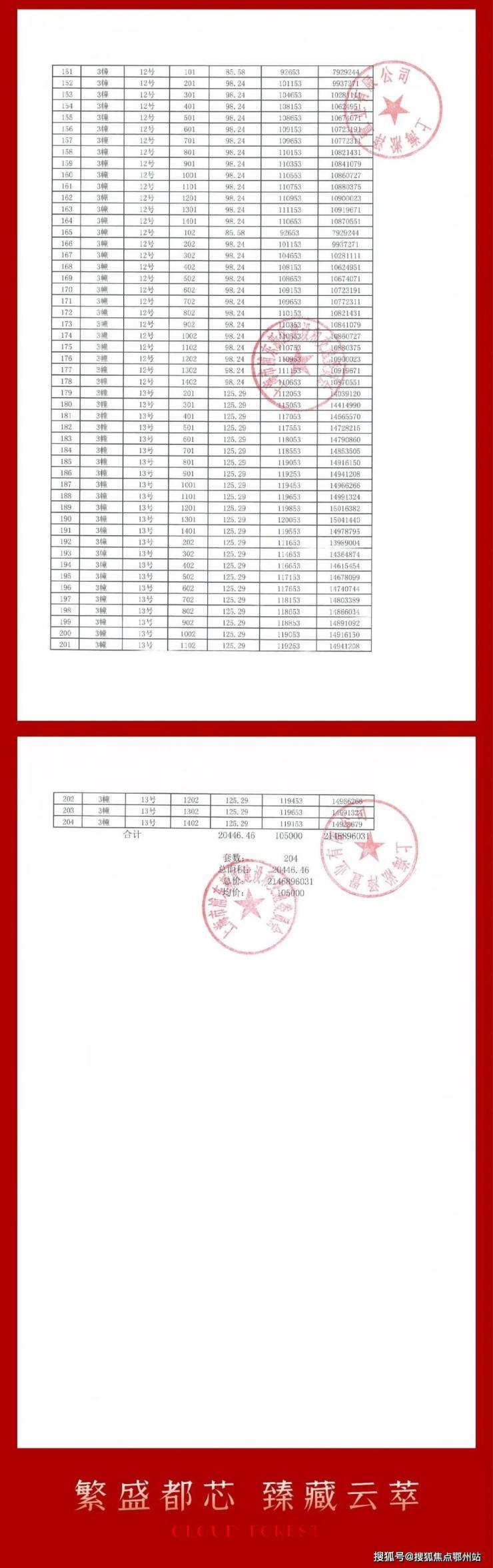 中企云萃森林一房一价表如下: