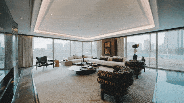 超100㎡的U型全景厅,南向全景宽幕,超大面宽与河景视野交融,是生活的视野,亦是归家的气度。