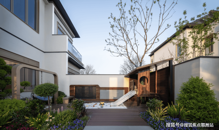 白天,在庭院摇椅中小憩,庭院用餐、儿童活动、品茶区都在户外。夜晚到来,则可以置身户外阳光房中观看露天电影,或是组织一场露天烧烤。