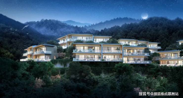 流金VILLA以 金色窗框+高窗墙比为特色,流云VILLA则是悬浮在整个项目 最高的地势上,被称为“云梢上的月光宝盒”。建筑层层叠落,与青山厚韵交相辉映,抒写着崭新的东方人居语境。