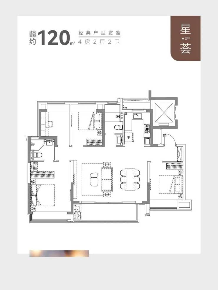 建面约120㎡的产品,市面上大多都是3房,但大华星曜做了4房的设计,实用性非常出色。