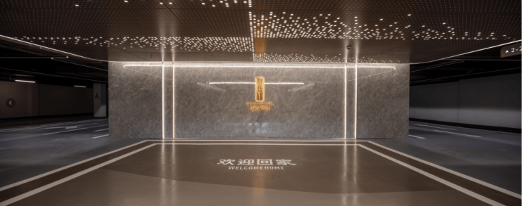 铝板&石材搭建的公区+精装双大堂+星空顶车库