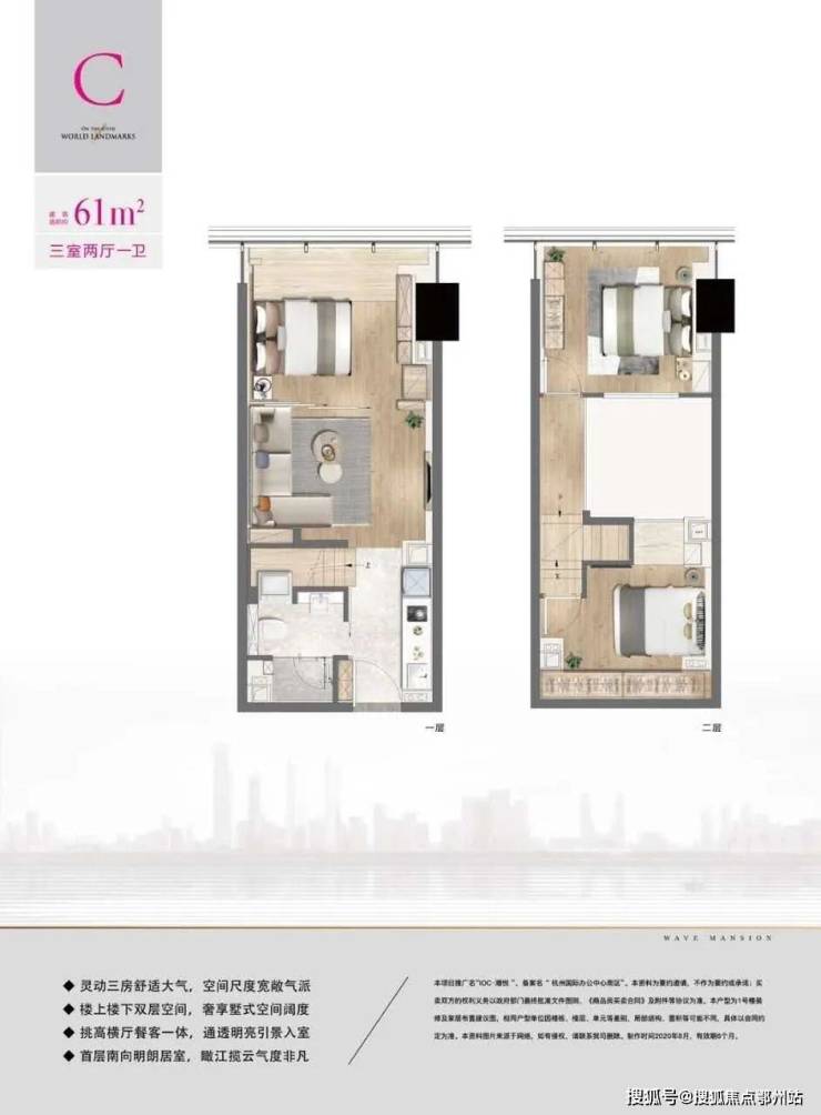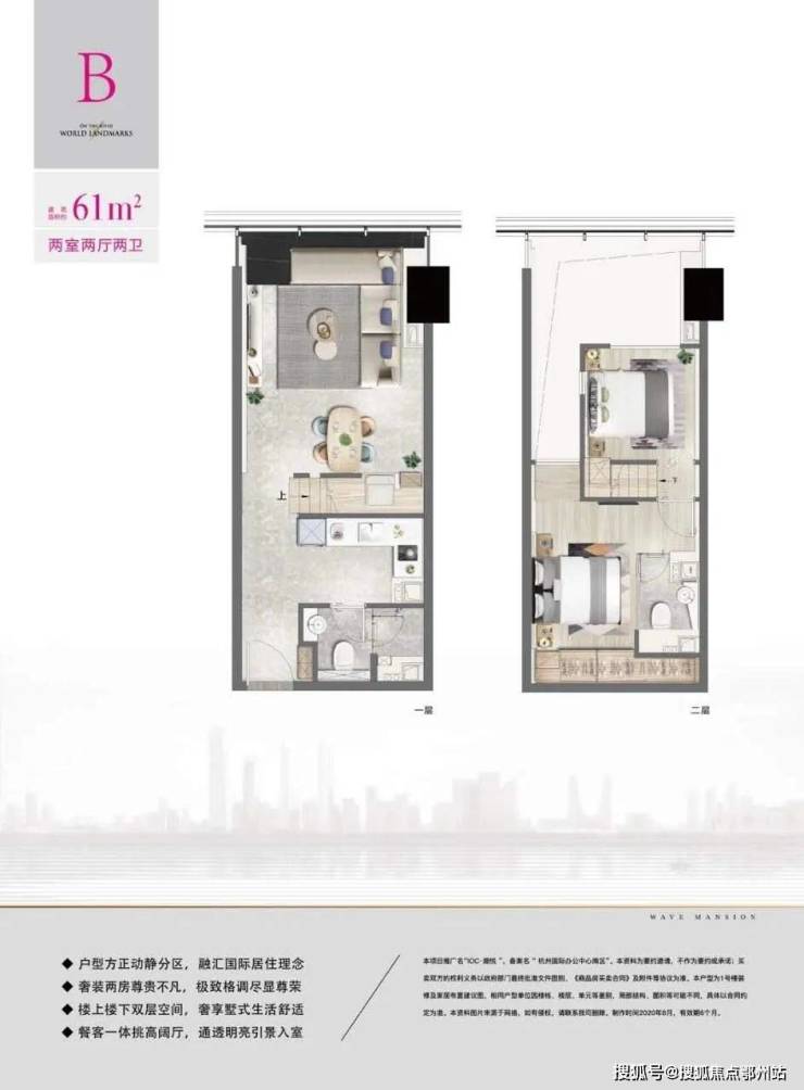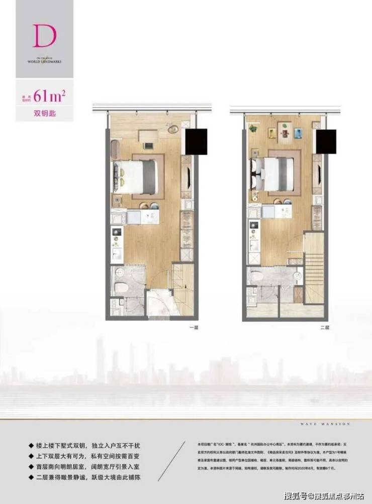 作为杭州高端住宅市场的标杆级作品,项目创新打造建筑面积49-106平方米的精装LOFT产品。4.2米层高设计突破传统空间限制,主力61平方米户型通过科学空间规划实现两至三房布局,并引入双钥匙产权设计,满足多元化居住与投资需求。项目采用8000元/平方米精装标准,集成中央空调、新风系统及智能家居体系,卫浴厨具均配置国际品牌产品。