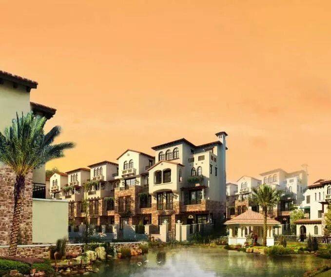 【同润•蓝美俊庭】采用南加州的建筑风格,外立面采用文化石和暖黄色涂料,搭配红色的筒瓦、烟囱、铁艺栏杆等建筑,尽现南加州原乡风情。