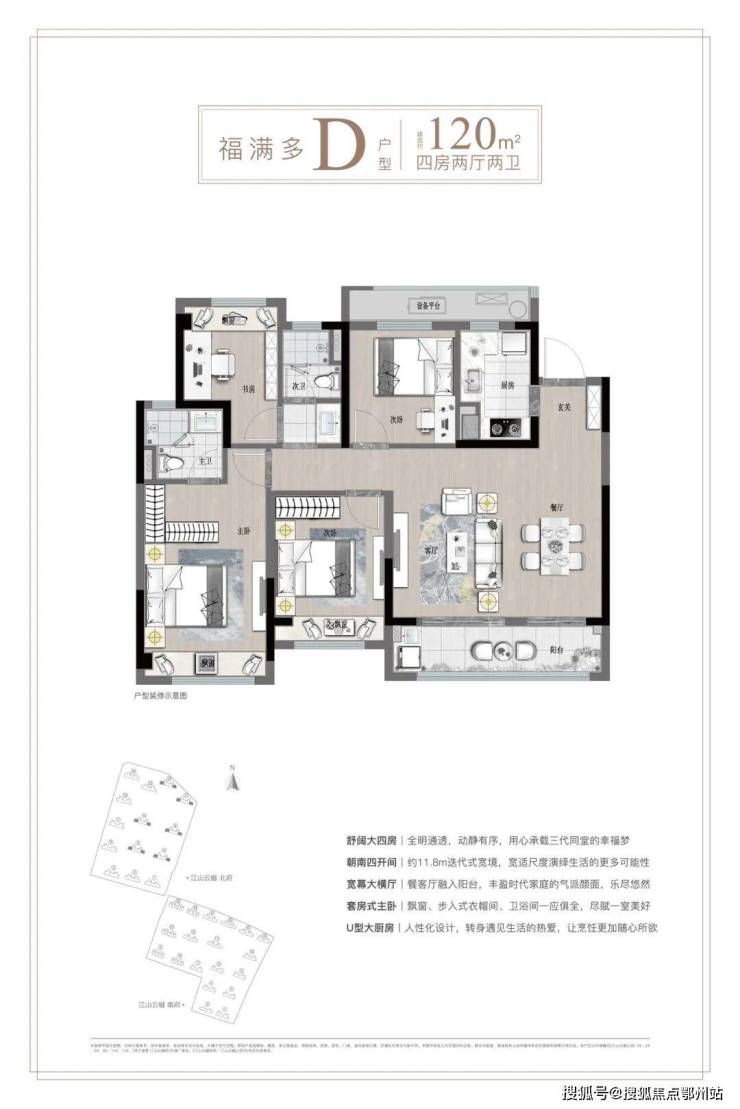 📐户型:三房88/98平,四房120/128平