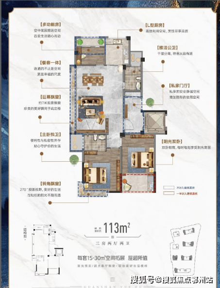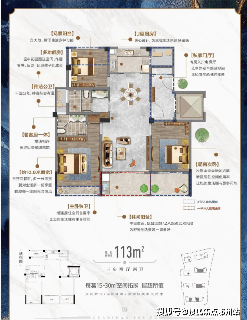 户型效果图赏析113㎡B1户型/新中式