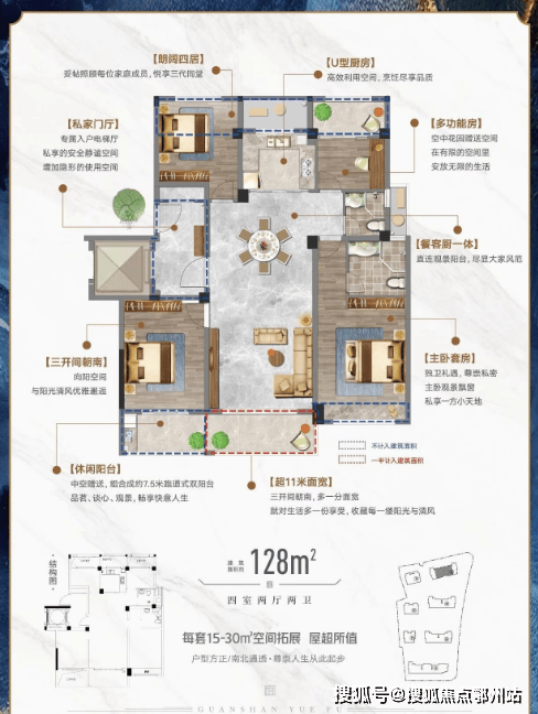 C户型/128㎡ 每套约30㎡空间拓展