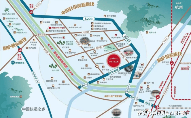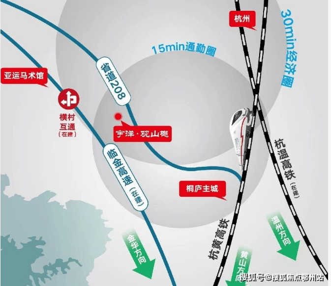 2 :区域 助推融杭先锋军桐庐2022年迎来“双高铁时代”,一举成为环杭要塞城市,并入杭州组团发展模块,更有省道208、临金高速(在建)串联同心发展,交通的多元化让桐庐与杭州市区,及其他城市的交流增添无限可能。