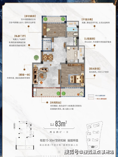 A户型/83㎡ 每套约15㎡空间拓展