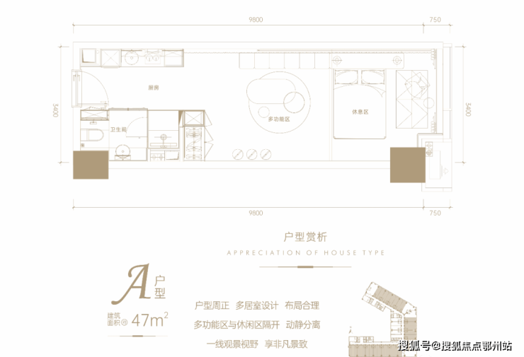 【产品户型价值联想】 :A/B类面积段户型约37-47㎡,C类面积段户型约69-94㎡平层公寓,整层定制打通约1900㎡,全能型户型设计,高端临江酒店、美容SPA会所、培训机构、健康疗养中心、互联网公司、白领自住公寓、个人工作室等皆可打造,宜商宜住宜投资,人气核心不愁租