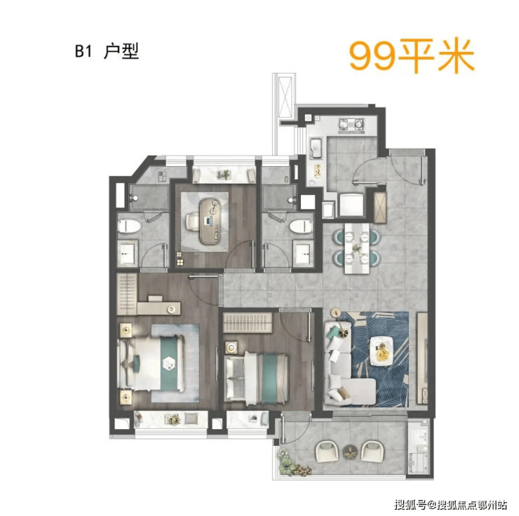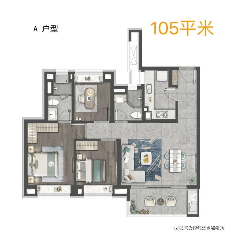 以 99㎡三房两厅两卫户型为例,客餐厅连接景观阳台,采光面更大,为日常生活带来更多舒适感,双卫设计更为生活增添便利。105㎡三房两厅两卫户型,客餐厅与阳台一脉相连,居住空间感进一步扩大,约 5.1 米的宽厅,无论是日常休憩还是会客,都尽显大方得体。此外,项目中央空调、地暖、新风三大件配套齐全,且臻选大金等同级品牌空调地暖、老板和方太等同级品牌厨房配备、摩恩、弗兰卡、科勒等同级品牌卫浴配备 ,每一处细节都彰显着对居者的用心,为您打造高品质的居住环境。