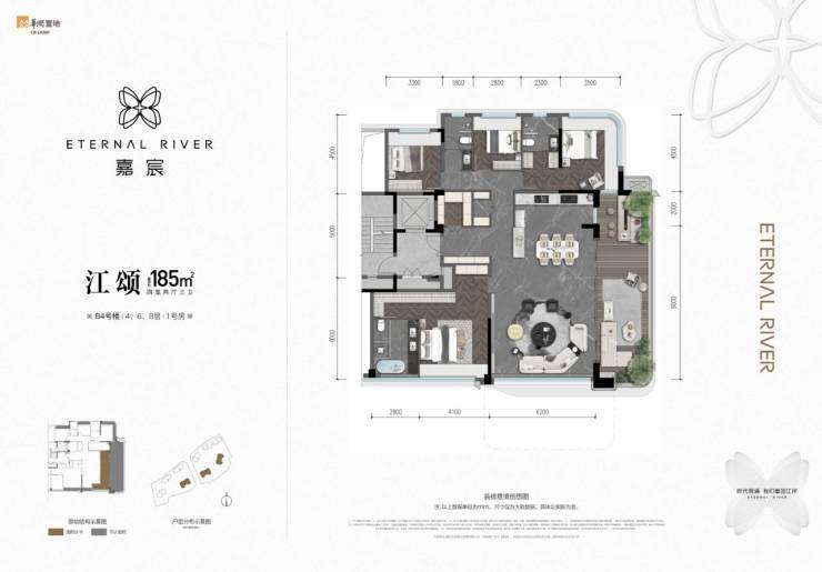 产品设计高端:8栋住宅共200户,规划为大平层与洋房,采用1T1纯板式设计,主力户型为建面约140㎡、143㎡、185㎡,满足改善型及资产配置需求。