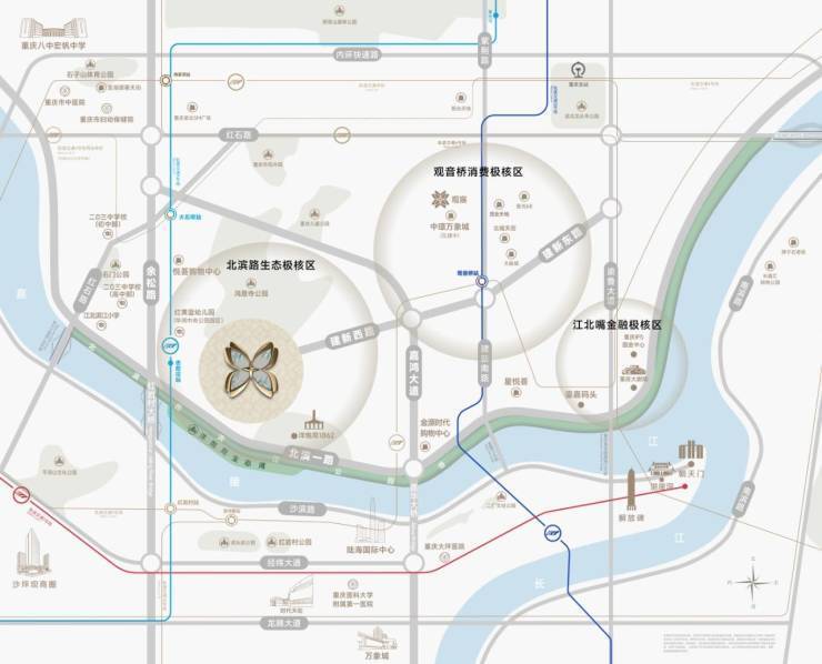 地理位置优越:地处两江四岸极核区头排亲江地块,紧邻观音桥商圈与江北嘴金融中心,交通便利,生活配套成熟。