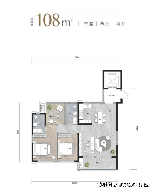 约12.2米大面宽设计,以往只常见于建面约160平户型。这样做不仅放大了采光面,还升级了生活功能性,又给生活增加了一份松弛感。