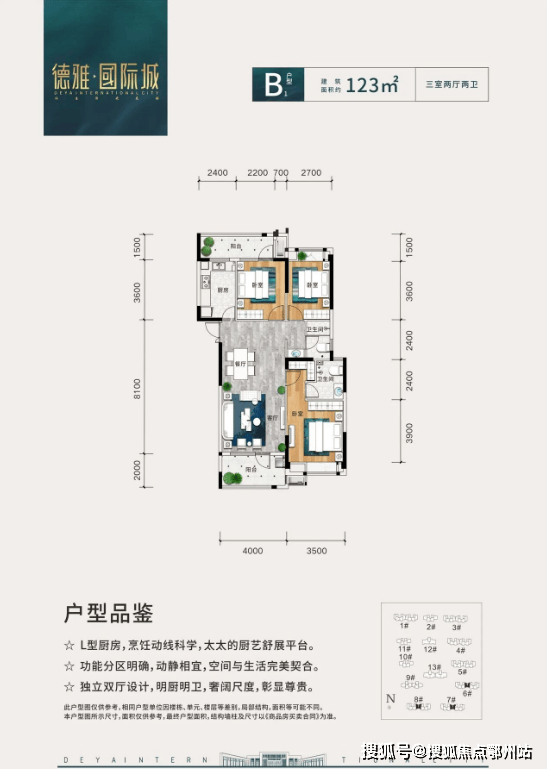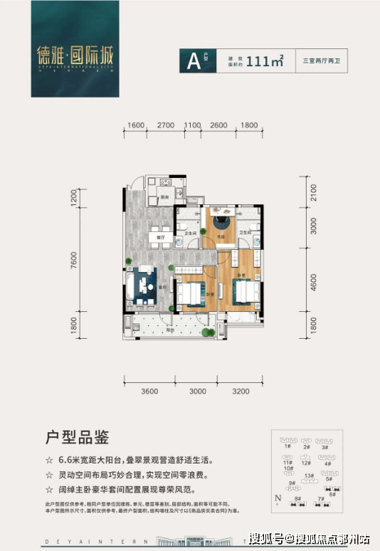德雅国际城地处新老城区交汇处,紧邻阳逻之心,地理位置优势明显。目前在售四期12#、13#楼,即将加推四期6.7.8.9栋,区间面积约110㎡-140㎡,项目图册和户型图如下: