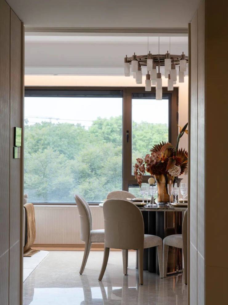 项目臻选全球顶尖家居配置,玄关处土耳其进口奥特曼淡米黄迎宾,延续至室内大面积奥特曼米黄天然石材铺装,精致隐奢。